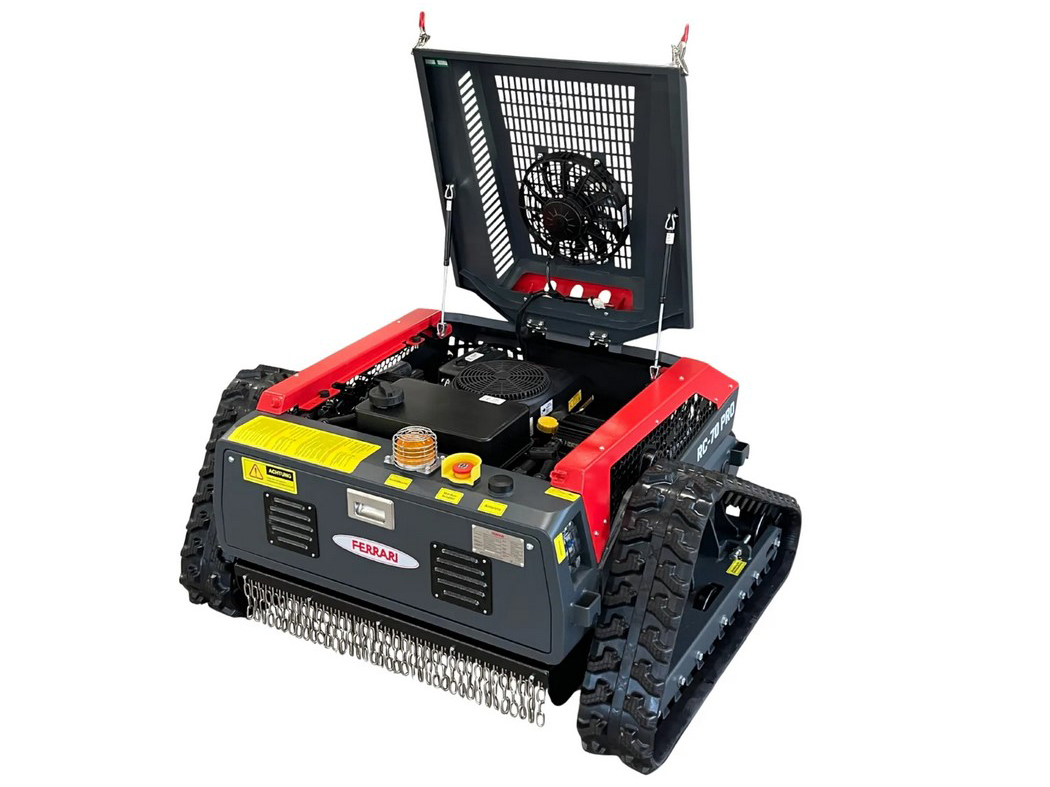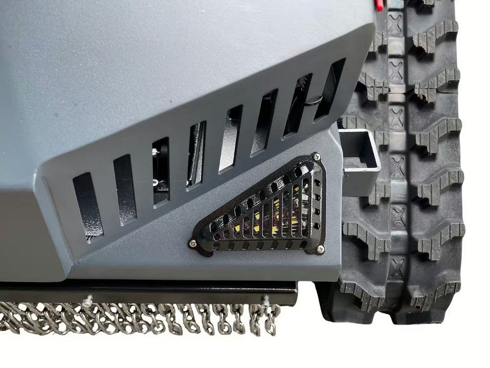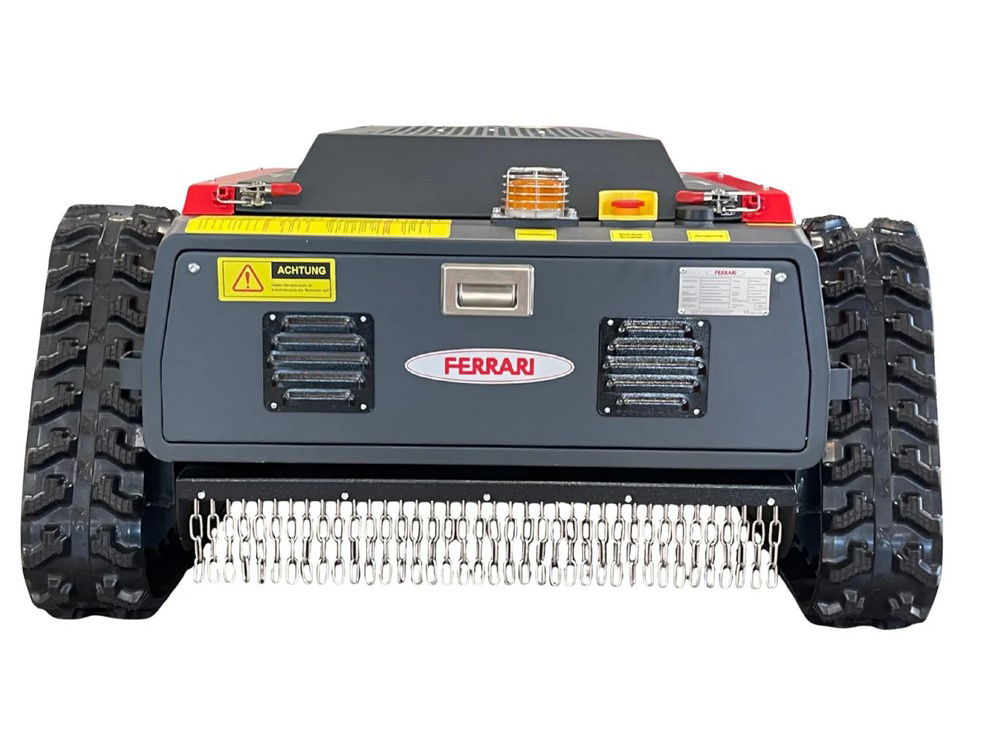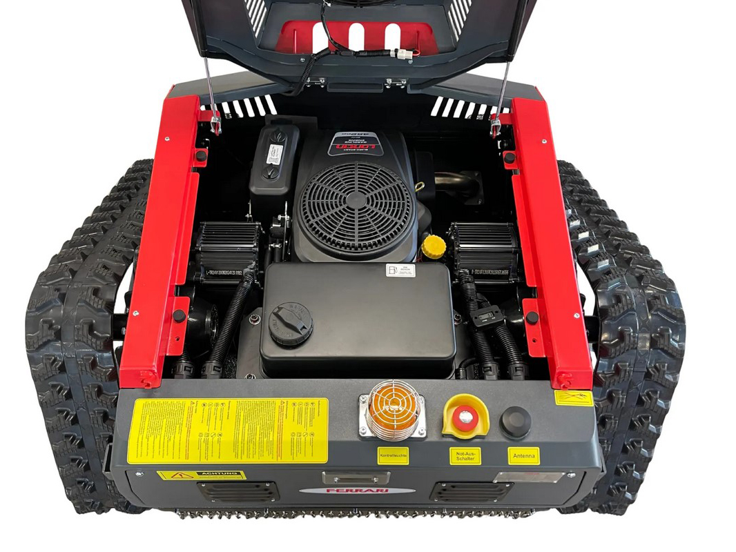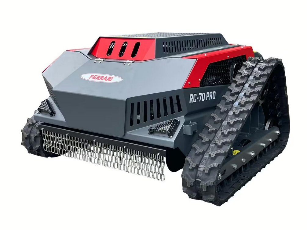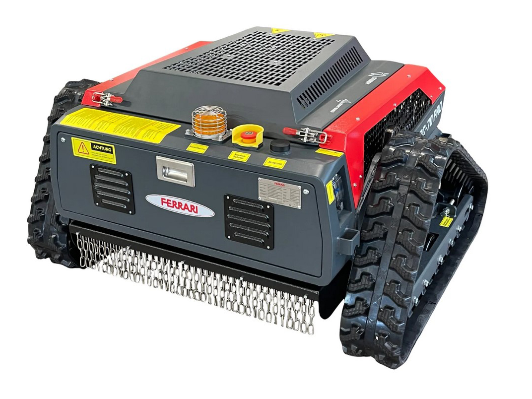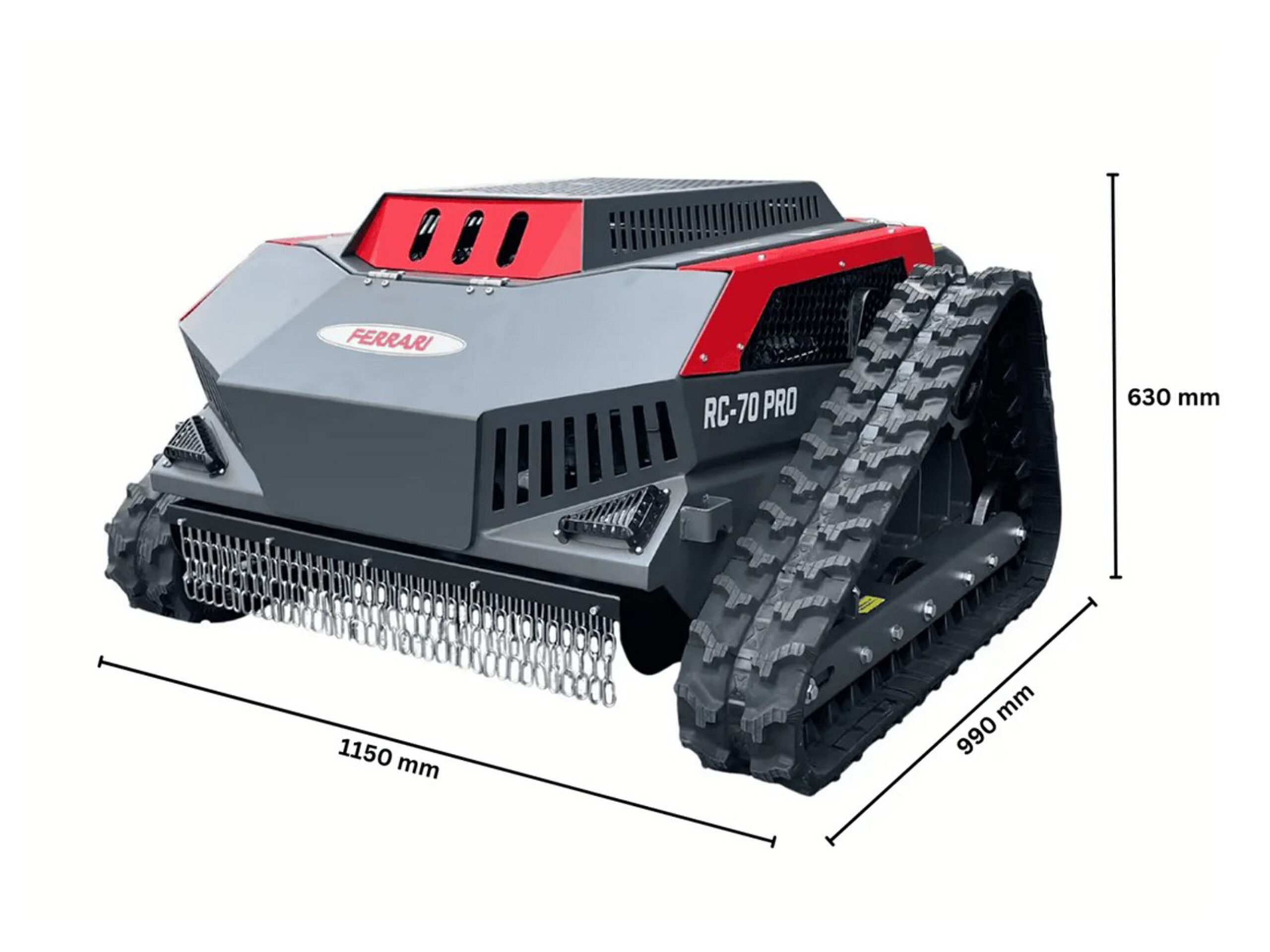 Mit einer Steigfähigkeit bis zu 45° und einer automatischen Sicherheitsabschaltung bei zu starker Neigung bleibt die RC-70 Pro jederzeit sicher im Einsatz. Das Raupenfahrwerk garantiert Traktion und Stabilität, auch auf weichem oder steilem Untergrund.