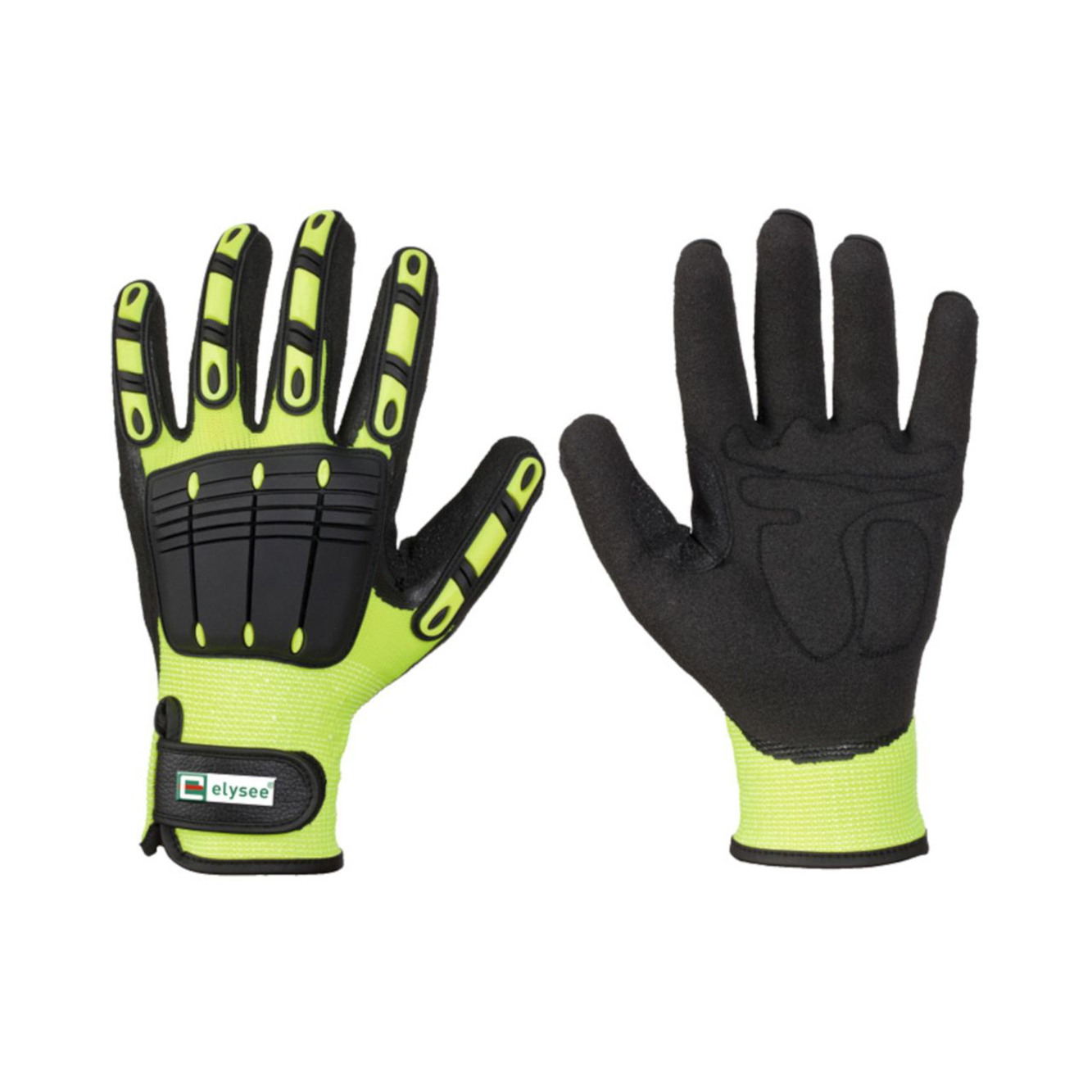 Der Resistant Handschuh von ELYSEE® ist ein leistungsstarker Schnittschutzhandschuh für den professionellen Einsatz in Bereichen mit erhöhtem Risiko durch scharfe Kanten und mechanische Belastung. Der Trägerhandschuh besteht aus einem hochwertigen Feinstrickgemisch aus HPPE, Nylon, Polyester und Elasthan – das sorgt für angenehmen Sitz, Flexibilität und hohe Reißfestigkeit. Eine schwarze, gesandete Nitril-Beschichtung auf der Innenhand bietet exzellenten Grip – auch bei öligen oder feuchten Oberflächen.